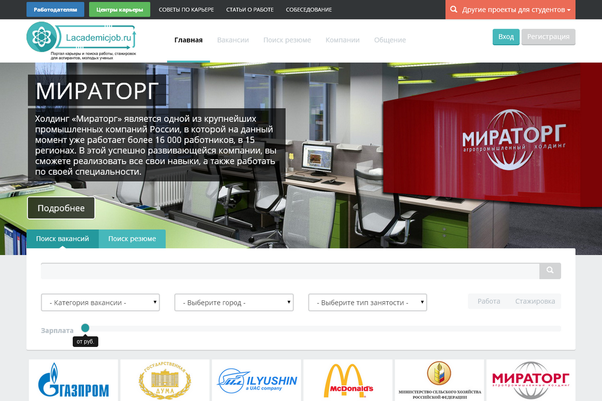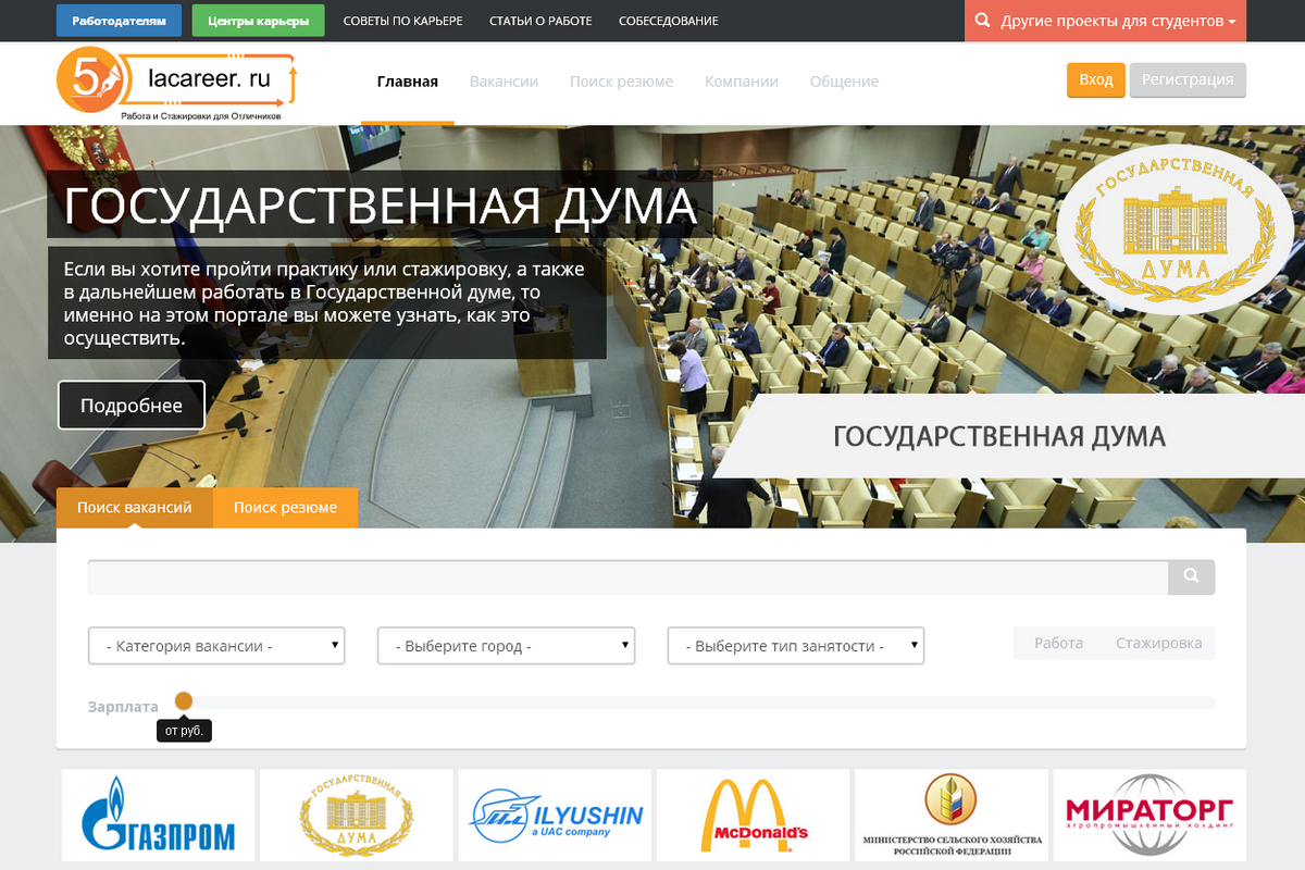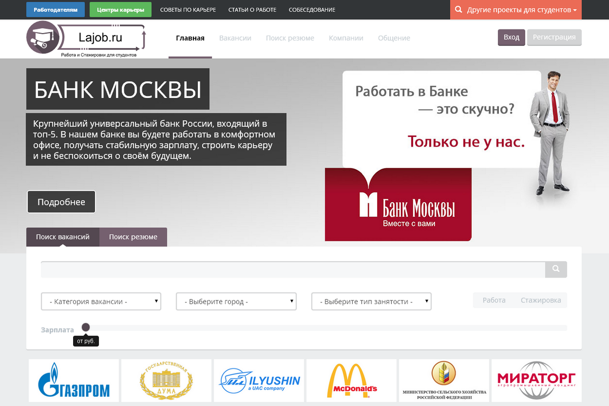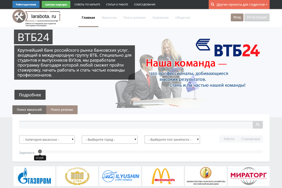 Мы предлагаем Вашим выпускникам действительно серьезные вакансии. Сотрудничающие с нами работодатели не ищут разносчиков газет, они ищут перспективных специалистов, нацеленных на успешную карьеру.