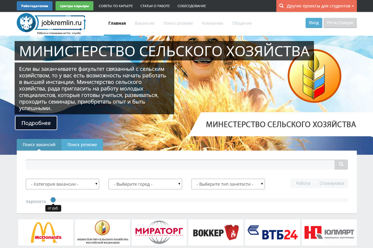 Каждый из 10 наших порталов работы специализируется на конкретной отрасли экономики, что обеспечивает максимально быстрый и продуктивный поиск.